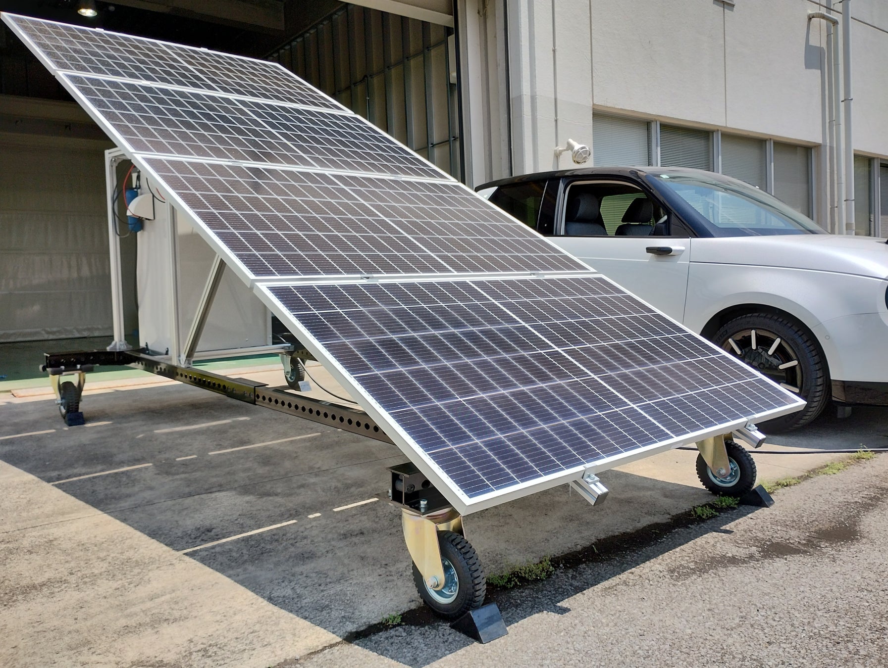 おひさまのエネルギーを電気に変えて、EVにダイレクトで充電!!車一台分のスペースがあれば、どこでもコロコロ設置可能!